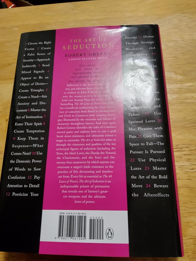 This is a big book of red flags. If you’re interested in history and the tactics seducers have used across centuries — tactics still alive today — it’s worth a read. The strategies themselves aren’t inherently good or evil; it depends entirely on your intent. If you’re out to mislead someone for selfish reasons, that’s on you. But if you want to court someone sincerely and build a genuine relationship, then yes, the book can give you ideas.Greene cherry-picks anecdotes from history, often filling the margins with parables. Where it falls flat for me is when he leans on fictional stories to “prove” a point — they feel exaggerated and flimsy.I’m convinced the tactics work. But they’re cold, pragmatic, and detached. You’ll get out of it what you put into it — and consequences always follow.Also, read the very back. Appendix A and Appendix B are worth the extra attention. They’re basically a brief summary of everything he covered in the entire book, focusing primarily on crowd control and how to direct people’s attention.One last note: most of the stories feature wealthy, eccentric aristocrats. If you try to mimic these behaviors as an ordinary person, it won’t look charming — it’ll look off-putting or manipulative. Wealth and reputation insulate many of the examples in this book. Without that, much of its advice can turn toxic fast.I personally enjoyed the short stories from different points in history. If for nothing else, it’s worth the read for that alone.